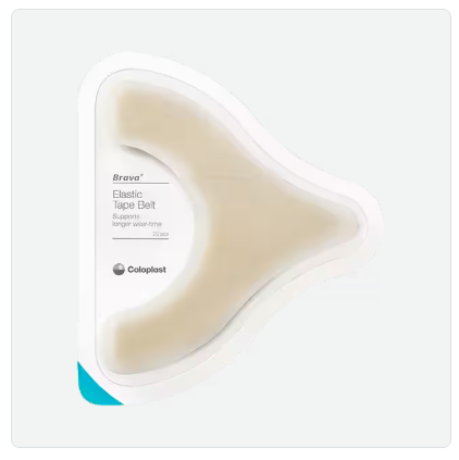 The Brava Elastic Tape is designed to prevent the edges of the baseplate from lifting and rolling and keeps the baseplate securely in place. Its elasticity means that it follows body shape and allows freedom of movement. This can mean greater security and longer wear-time of stoma bags.